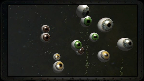 Enormous glistening eyeballs gaze down on you from their vast tank, nervously watching to see who is there. They drift about in their tank, following people as they pass to and fro.