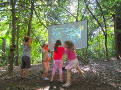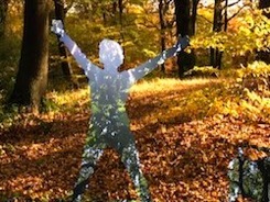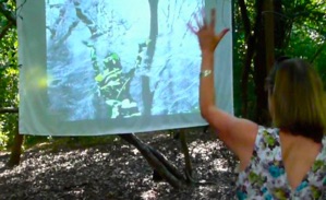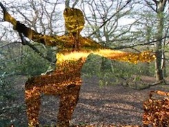 Participants’ presence, and their movements, hide and reveal transparent layers of video - these woods through their seasonal changes.