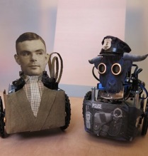 Each robot approx 15 x 25 x 15cm. Arena 185 x 100 x 90cm.