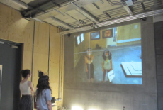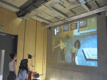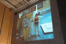 Continuously projected interactive video installation. Programmed using OpenFrameworks, OpenCV, live camera, Internet.